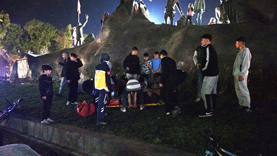Olay, akşam saatlerinde meydana geldi. Oyun oynamak amacıyla heykelin üzerine çıkan çocuklardan biri, dengesini kaybedip yere düştü. Ayağından yaralanan çocuğa ilk müdahale olay yerine sevk edilen 112 Acil Servis ekiplerince yapıldı.