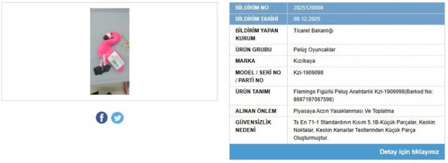 Son denetimlerde, Kızılkaya markasına ait bir oyuncak-aksesuar ürününde kullanıcı sağlığını tehdit eden unsurlar tespit edildi. İncelemelerin ardından söz konusu ürünün kullanım açısından güvensiz olduğu değerlendirilirken, gerekli işlemler hızla başlatıldı.