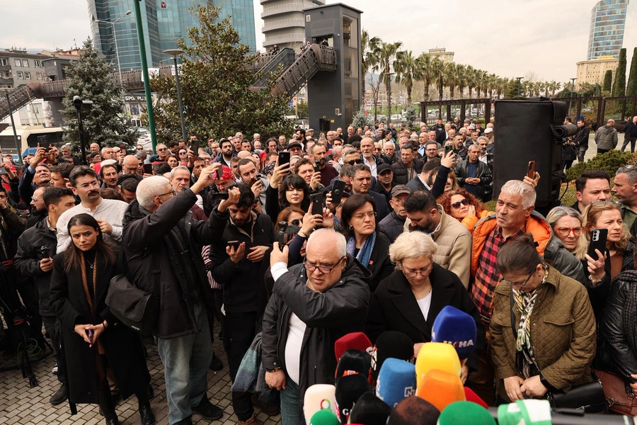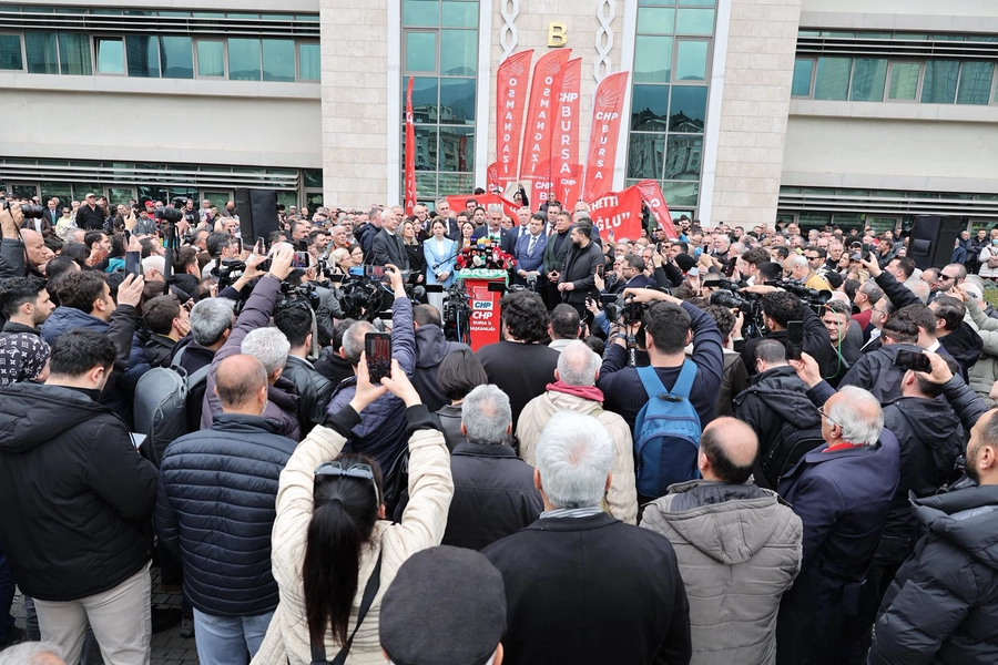 Protestoya Bursa’daki CHP’li belediye başkanlarının da katıldığı görüldü. Belediye binası önünde açıklama yapan CHP Bursa İl Başkanı Nihat Yeşiltaş, gözaltı sürecine sert tepki gösterdi.