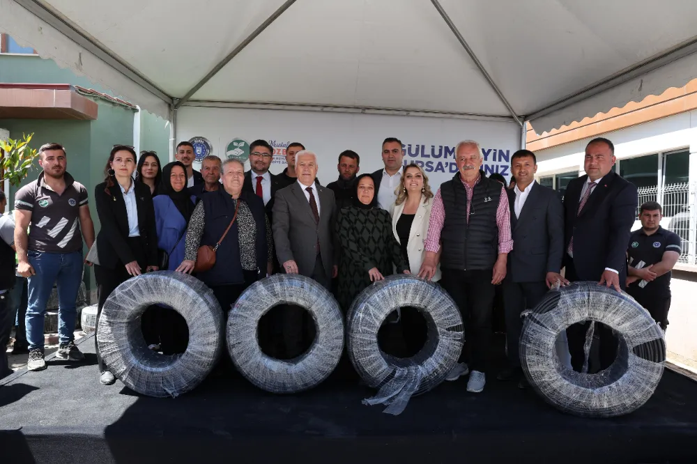 Bursa’da her alanda çiftçiyi destekleyen ve kırsal kalkınmayı sağlayarak köyden kente göçün önüne geçmeyi hedefleyen Büyükşehir Belediyesi, üretimin ve üreticinin yanında olmaya devam ediyor. Bursa Büyükşehir Belediyesi Kırsal Hizmetler Dairesi Başkanlığı ile Tarım Peyzaj AŞ iş birliğinde yürütülen ‘Damla Sulama Boru Projesi’ kapsamında Orhangazili çiftçilere damlama sulama boruları teslim edildi. Ayrıca yine Büyükşehir tarafından üretilen sıvı gübreler de deneme amaçlı olarak üreticilere dağıtıldı. Orhangazi Ziraat Odası önünde gerçekleşen törene, Bursa Büyükşehir Belediye Başkanı Mustafa Bozbey’in yanı sıra CHP İlçe Başkanı Berna İl, Tarım Peyzaj AŞ Yönetim Kurulu Başkanı Mehmet Aydın Saldız, Tarım Peyzaj AŞ Genel Müdürü Sedat Akar, Orhangazi Ziraat Odası Başkanı Dinçer Dimrit, Nilüfer Ziraat Odası Başkanı Şenol Aybey, muhtarlar, üreticiler ve vatandaşlar katıldı.