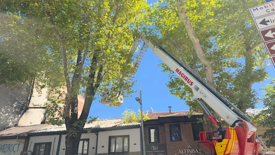 İnegöl Mahmudiye Mahallesi Kasım Efendi Caddesi’nde ilginç bir kurtarma operasyonu gerçekleştirildi. İki gündür çınar ağacında mahsur kalan kargayı fark eden vatandaşlar durumu itfaiye ekiplerine bildirdi.