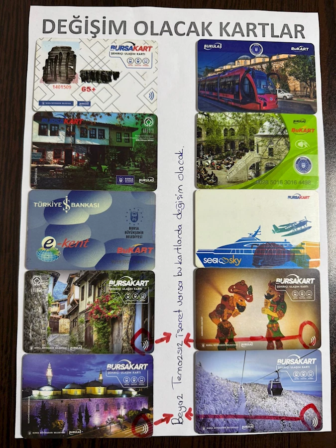 Bayram, üzerinde temassız ödeme işareti (sarı veya kırmızı “wireless” simgesi) bulunmayan eski tip kartların 50 TL karşılığında yeni nesil Bursakartlarla değiştirileceğini ifade etti.