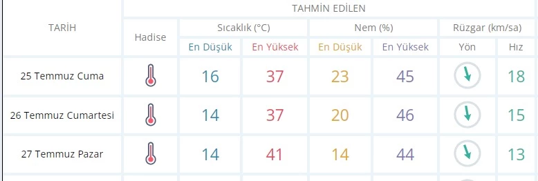 Pazar günü termometreler zirve yapacak ve 41 dereceye kadar yükselecek. Hissedilen sıcaklık ise ortalama 43 derecelere kadar çıkacak.