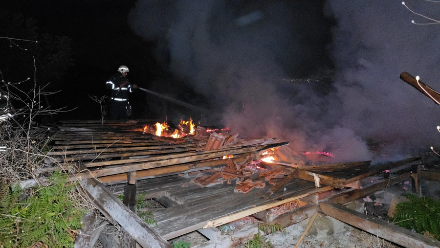 Yangın sonucu bahçe içinde bulunan baraka tamamen yanarak kullanılamaz hale geldi.