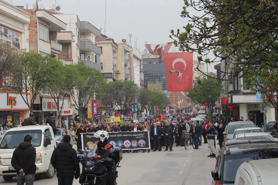 Yürüyüş, eski belediye binası önünde başladı ve sloganlar eşliğinde Atatürk Anıtı önünde sona erdi. Programa yüzlerce öğretmen ve eğitim çalışanı katıldı.