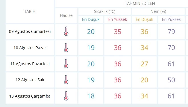 Özellikle hafta sonu nem oranının yüksek olması, hissedilen sıcaklığı daha da artıracak. Yetkililer, vatandaşlara öğle saatlerinde dışarıda uzun süre kalmamaları, bol su tüketmeleri ve güneşten koruyucu önlemler almaları yönünde uyarıda bulundu.