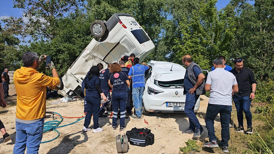 Alınan bilgilere göre kaza, İnegöl Organize Sanayi Bölgesi Havaalanı Caddesi üzerinde meydana geldi. Furkan Burak D. (31) idaresindeki 34 ELB 037 plakalı otomobil ile Fahrettin A. (31) idaresindeki 16 Z 9027 plakalı kapalı minibüs çarpıştı. Meydana gelen kazada sürücüler ile otomobilde bulunan Mine T. D. (28) yaralandı.