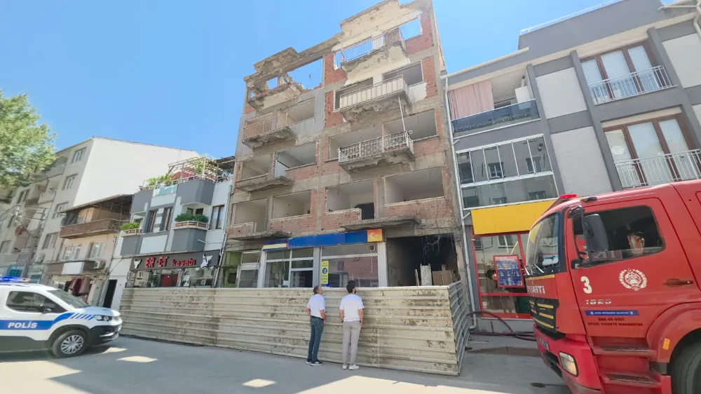 İnegöl'de Harabe Bina Yıkılırken Yangın Çıktı