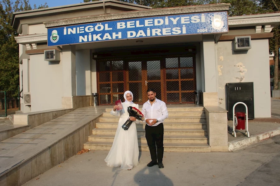 İnegöl'de nikahlarına geç kalan Namık Kar ve Hacer çifti, özel halk otobüsünü durdurarak salona yetişti. Çiftin nikah şahidi ise otobüs şoförü Ömer Ulubey oldu.