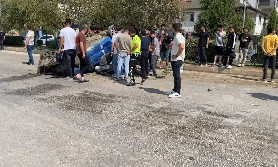 İnegöl'de otomobil takla attı! Yaralılar var...