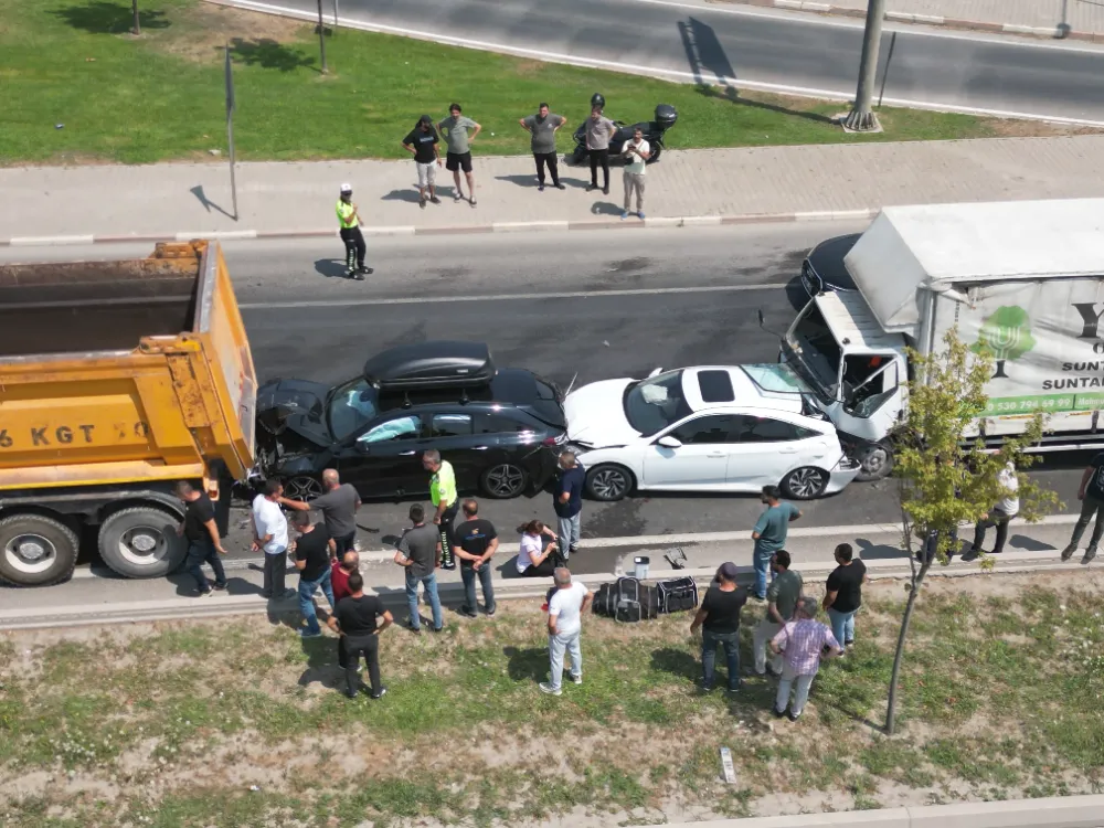 Kaza, Bursa-Ankara Karayolu Hikmet Şahin Köprüsü üzerinde meydana geldi. Edinilen bilgilere göre, Ankara'dan Bursa istikametine seyir halinde olan 16 KGT 70 plakalı kamyon, trafiğin yavaşlaması üzerine hızını düşürdü. Bu sırada arkadan gelen 1-URK-241 plakalı otomobil, ardından 26 AKY 169 plakalı bir başka otomobil ve son olarak 16 AGZ 898 plakalı kamyonet, birbirine çarptı.