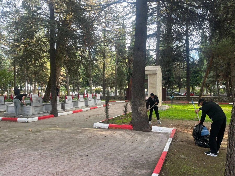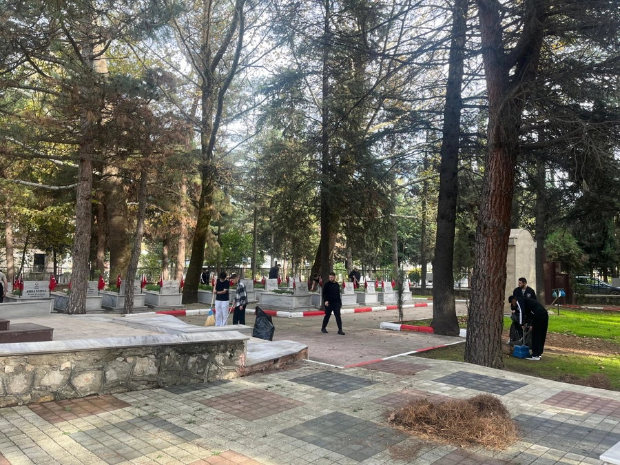 Milli değerlere sahip çıkma misyonuyla hareket eden dernek yönetimi ve genç üyeler, şehitliğe gerçekleştirdikleri ziyarette önce dua etti, ardından temizlik ve bakım çalışması yaparak örnek bir davranış sergiledi.