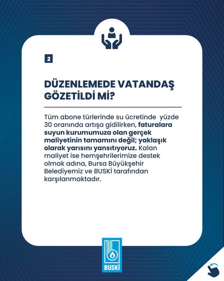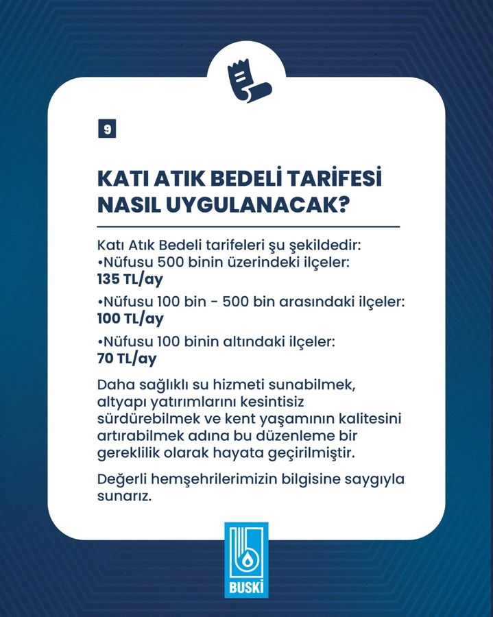 “Daha sağlıklı su hizmeti sunabilmek, altyapı yatırımlarını kesintisiz sürdürebilmek ve kent yaşamının kalitesini artırabilmek adına bu düzenleme bir gereklilik olarak hayata geçirilmiştir. Değerli hemşehrilerimizin bilgisine saygıyla sunarız.”