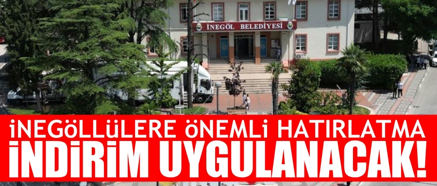 İnegöl Belediyesi tarafından yapılan açıklamada, ‘’7440 Sayılı Kanunla yapılandırmanın birinci ve ikinci taksitinin son ödeme tarihi 31.07.2023 Pazartesi günüdür. Ayrıca Taksitle ödeme seçeneği tercih edildiği halde, 31.07.2023 tarihine kadar yapılandırılan tutarın tamamının peşin olarak ödenmesi durumunda peşin ödeme indiriminden yararlanılabilecektir.’’ İfadeleri yer aldı.