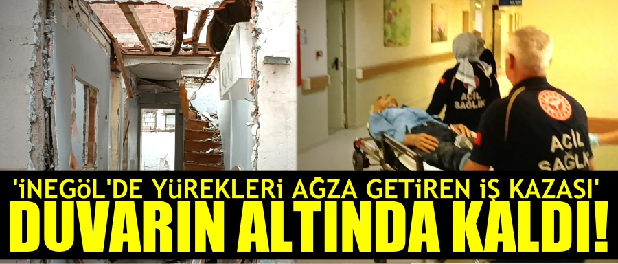 İnegöl'de eski bir binanın yıkımı esnasında inşaat işçisi duvarın altında kalarak yaralandı.