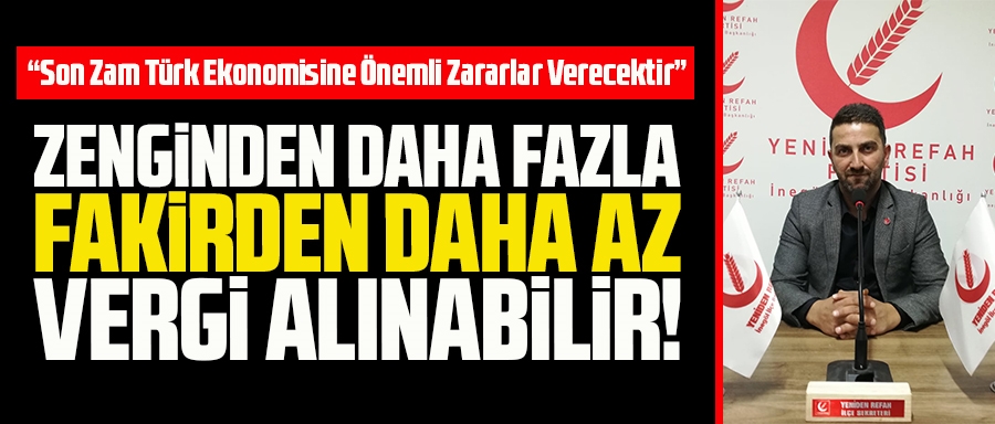 “Ayrıca, dolaylı vergilerin toplam vergiler içindeki oranı düşürülerek; gelir vergisi, kurumlar vergisi gibi dolaysız vergilerin payı artırılmalı böylelikle zenginden daha fazla, dar gelirliden daha az vergi alan adil bir vergi sistemine geçilmelidir. Bütçe açığının kapatılması, denk bütçenin hayata geçirilmesi için halka ilave yük yüklemek yerine, Yeniden Refah Partimiz’in ortaya koyduğu Milli Kaynak Paketleri’nden istifade edilmelidir. Son olarak da diyoruz ki; Asla ümidinizi kaybetmeyin, geleceğe umutla bakın. Ve Mart ayında da gereken tepkinizi ortaya koyun. Sizlerin sesi ve sizlerin temsilcisi olan yeniden Refah Partisini Belediyelerde işbaşına getirerek hak etmiş olduğunuz hizmete zaman kaybetmeden kavuşun.”