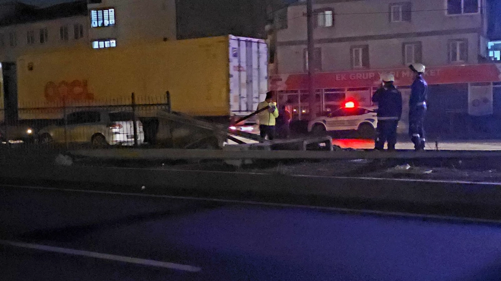 Savrulan araç, refüjde bulunan aydınlatma direği ile bariyerlere çarparak durabildi.