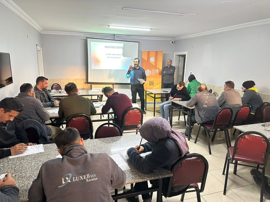 Üretim, montaj, tasarım, satış ve idari kadrolarda görev yapan çalışanların katıldığı programda; etik davranış, iş ahlakı, ekip içi güven ve motivasyonun iş süreçlerine etkisi detaylı şekilde ele alındı.