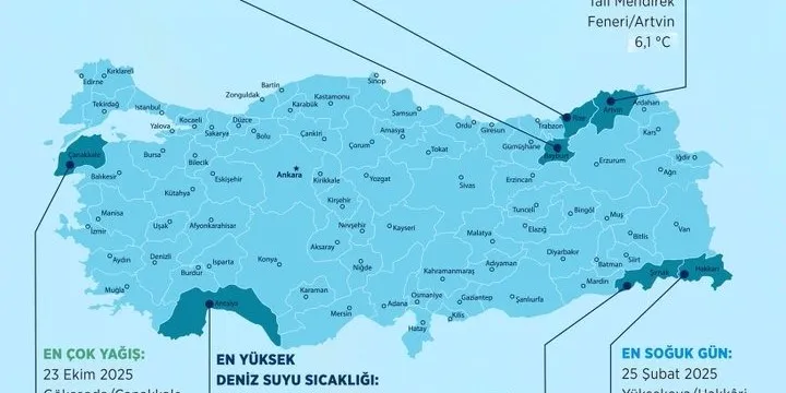 Çevre, Şehircilik ve İklim Değişikliği Bakanlığı’na bağlı Meteoroloji Genel Müdürlüğü, 2025 yılına ait Türkiye genelindeki meteorolojik rekor verilerini kamuoyuyla paylaştı.