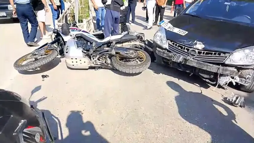 Otomobil ile motosiklet çarpıştı!