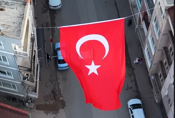 Mahalle sakinleri ve esnaflar, asılan dev bayrakların fotoğraf ve videolarını paylaşarak kampanyaya destek verdi.