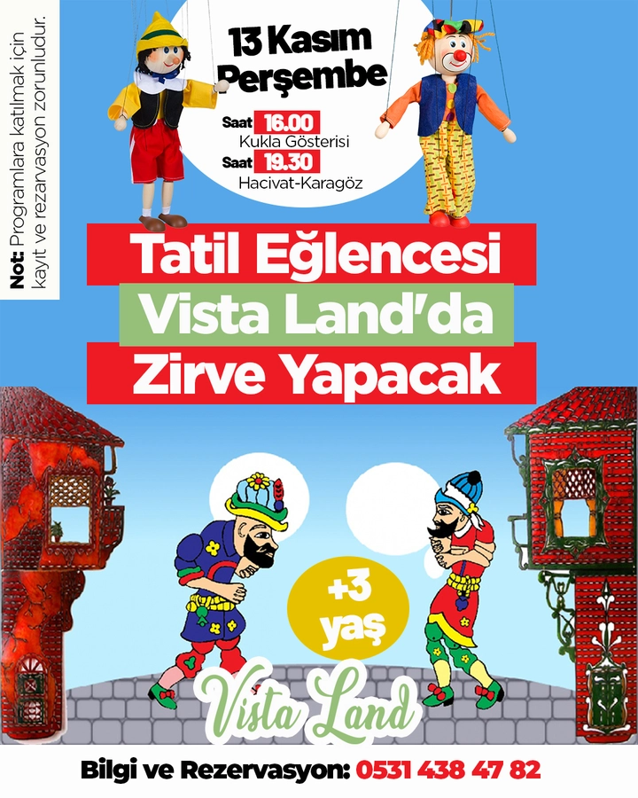 İnegöl’de hizmet veren Vista Land Cafe ve Oyun Parkı, ara tatile giren öğrenciler için keyifli bir etkinlik programı hazırladı. 13 Kasım Perşembe günü Vista Sahne’de düzenlenecek etkinliklerde çocuklar, eğlence dolu saatler geçirecek.